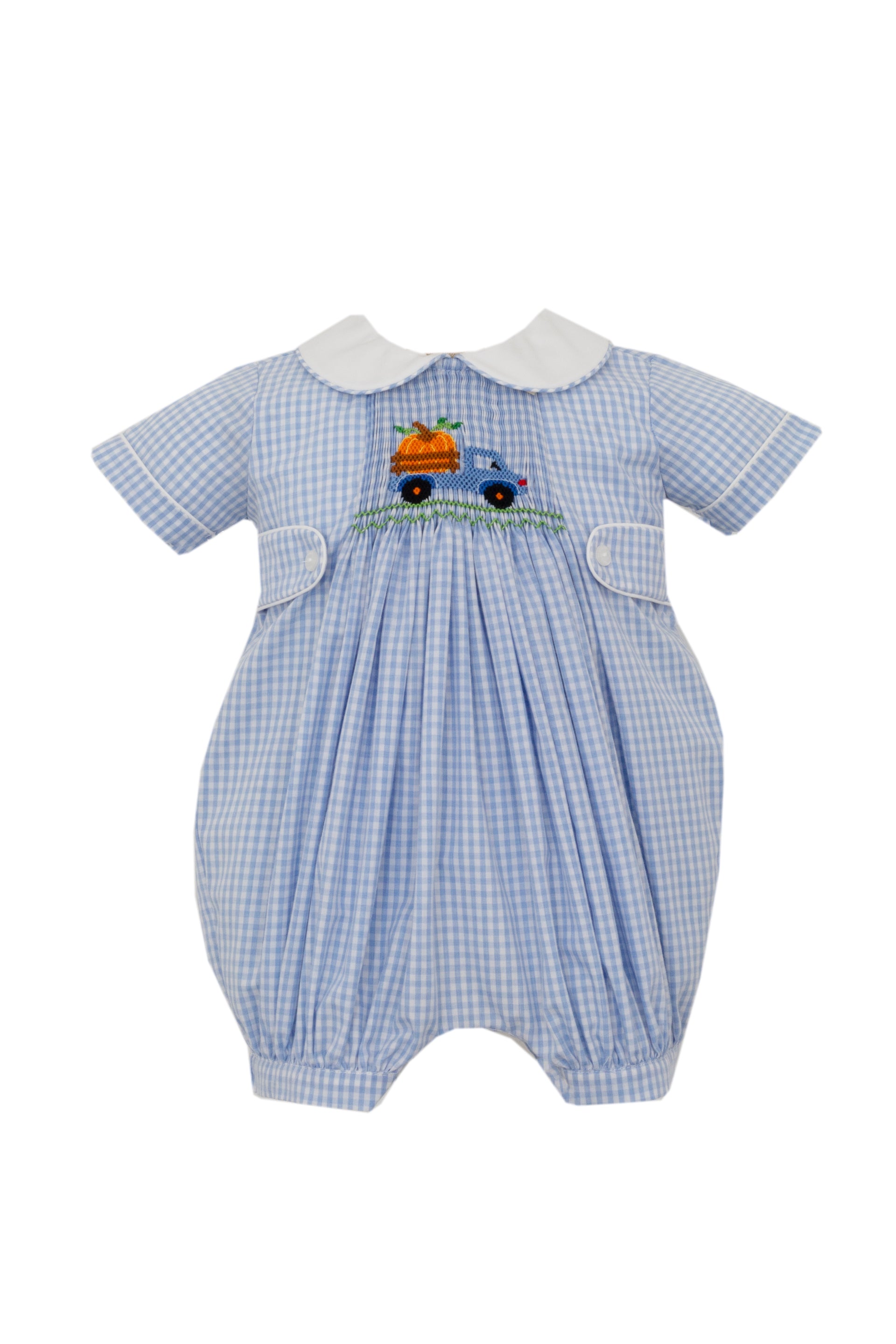 Pumpkin Truck Lt Blue Gingham Boy's Short Romper