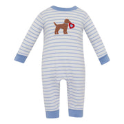 Claire & Charlie Valentine Lt Blue Stripe Boys long Romper L/S 5040H2-CH25 5212