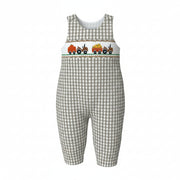 Boys Tan Gingham Smocked Field Tractor Long Jon Jon