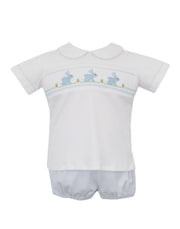 Bunny Boy's Lt Blue Knit Stripe Boy's Diaper Set