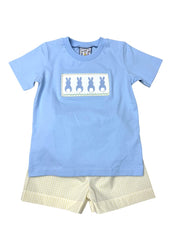 Three Sisters Bunny Hop Smocked Boys Short Set 703 5301