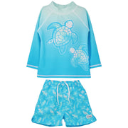 UPF 50 Graphic Rash Guard Swim Top Beach Turtles & Beach Turtles Trunks W/Mesh Liner
