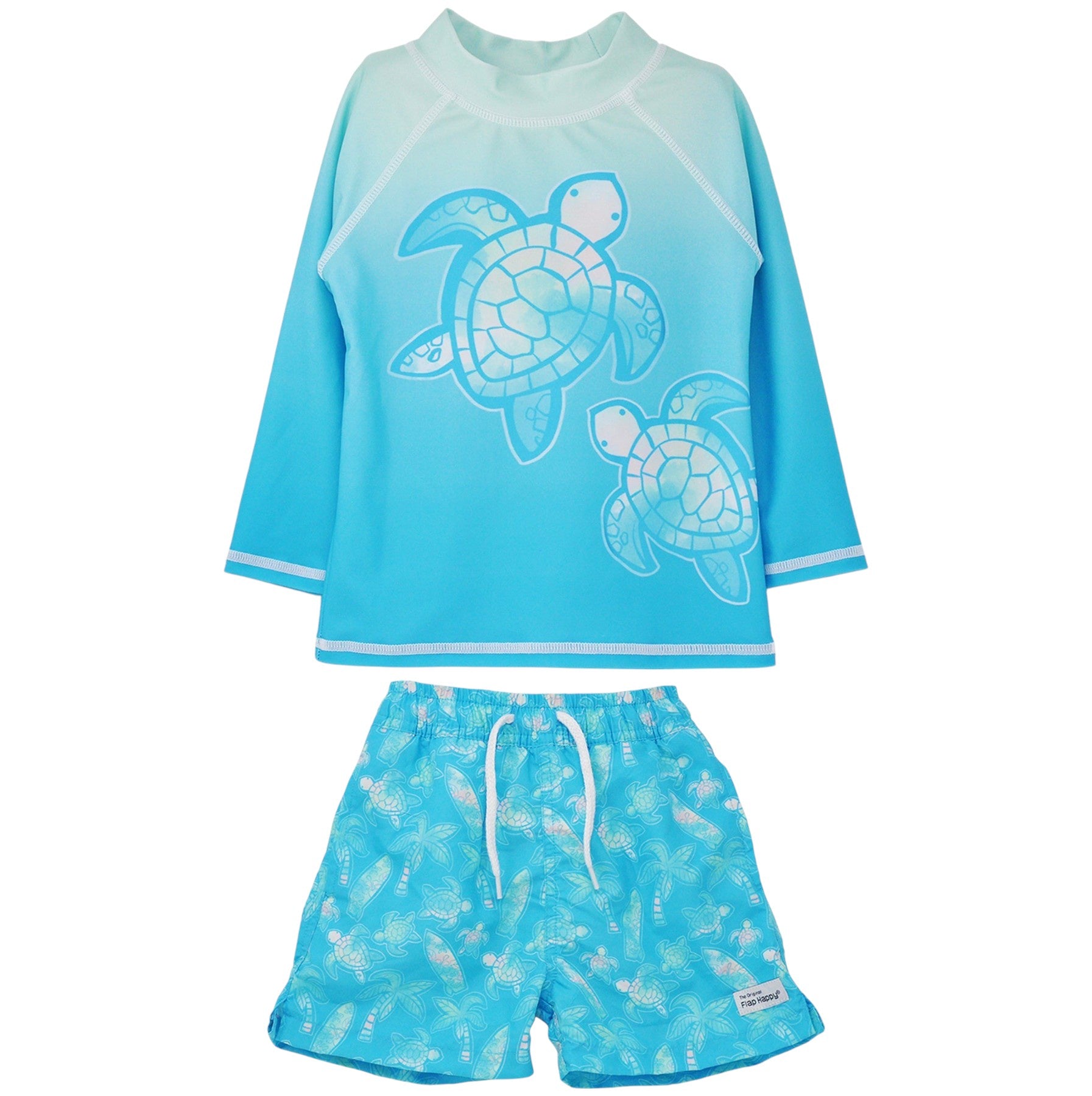 Flap Happy UPF 50 Graphic Rash Guard Swim Top Beach Turtles & Beach Turtles Trunks W/Mesh LinerRLPG/COCO 5112