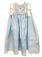 Treasured Memories Blue Sleeveless Dress W/Ecru Lace & Ecru Ribbon XXX09