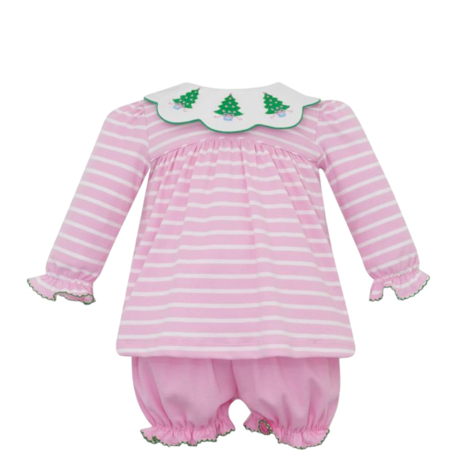 Claire & Charlie Trees Pink & White Knit Stripe Bloomer Set L/S 5031CL-CH25 5210
