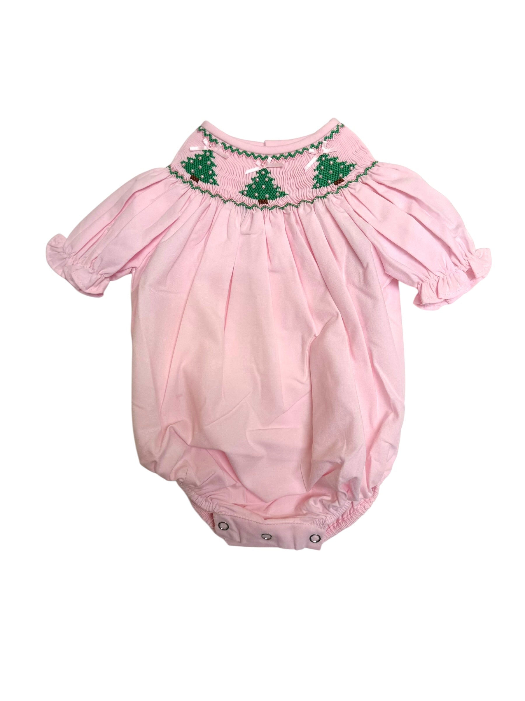 Christmas Tree Smocked Pink Bubble