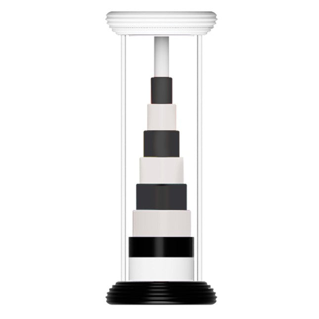 - Sensory toy with a stack of rings inside that flip from black-and-white to rainbow