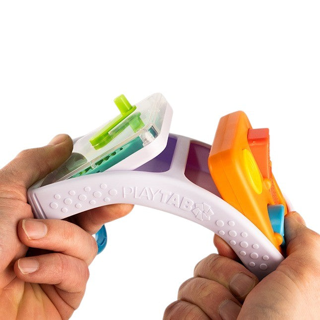 Take the joy of PlayTab with you wherever you go! The two included sensory tiles can be popped in and out of the flexible, durable case, and you can switch them out for any other PlayTab tiles. Plus, it has a clip for hanging from a car seat or stroller! Mix, match, and play on the go with PlayTab Go.