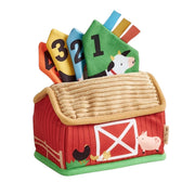 • Farm-themed put and take toy will help your little one develop hand-eye coordination and fine motor skills