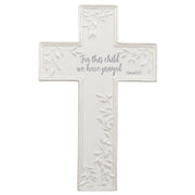 Celebrate the joy of answered prayers and the blessing of new life with this elegant wall cross. Featuring the beloved scripture “For this child we have prayed” (1 Samuel 1:27), it is accented with delicate leaf motifs that symbolize growth, nurturing, and the promise of tomorrow. A meaningful addition to a nursery or family space, it serves as a daily reminder of gratitude and faith. Perfect as a baptism gift, baby shower present, or treasured family keepsake.