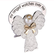 Bring comfort and grace to any space with this Bedside Angel Figurine. Featuring soft faux pearl accents, enamel detailing, and the message "My angel watches over me"‚ it's a beautiful reminder of love and protection. Available in white, pink, or blue.