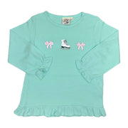 Lt Jade L/S Ruffle Swing Top W/Pink Bows & Ice Skate Applique