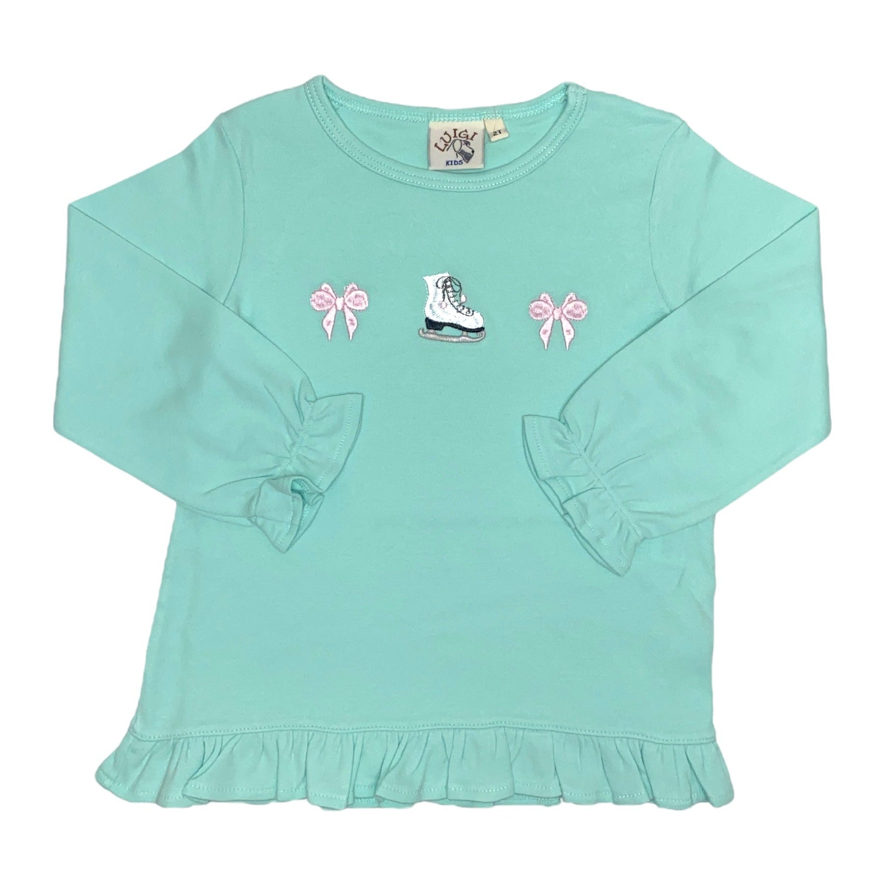 Luigi Lt Jade L/S Ruffle Swing Top W/Pink Bows & Ice Skate Applique 5210