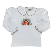 White Peter Pan Collar Shirt W/Brown Stitching & Rainbow Applique