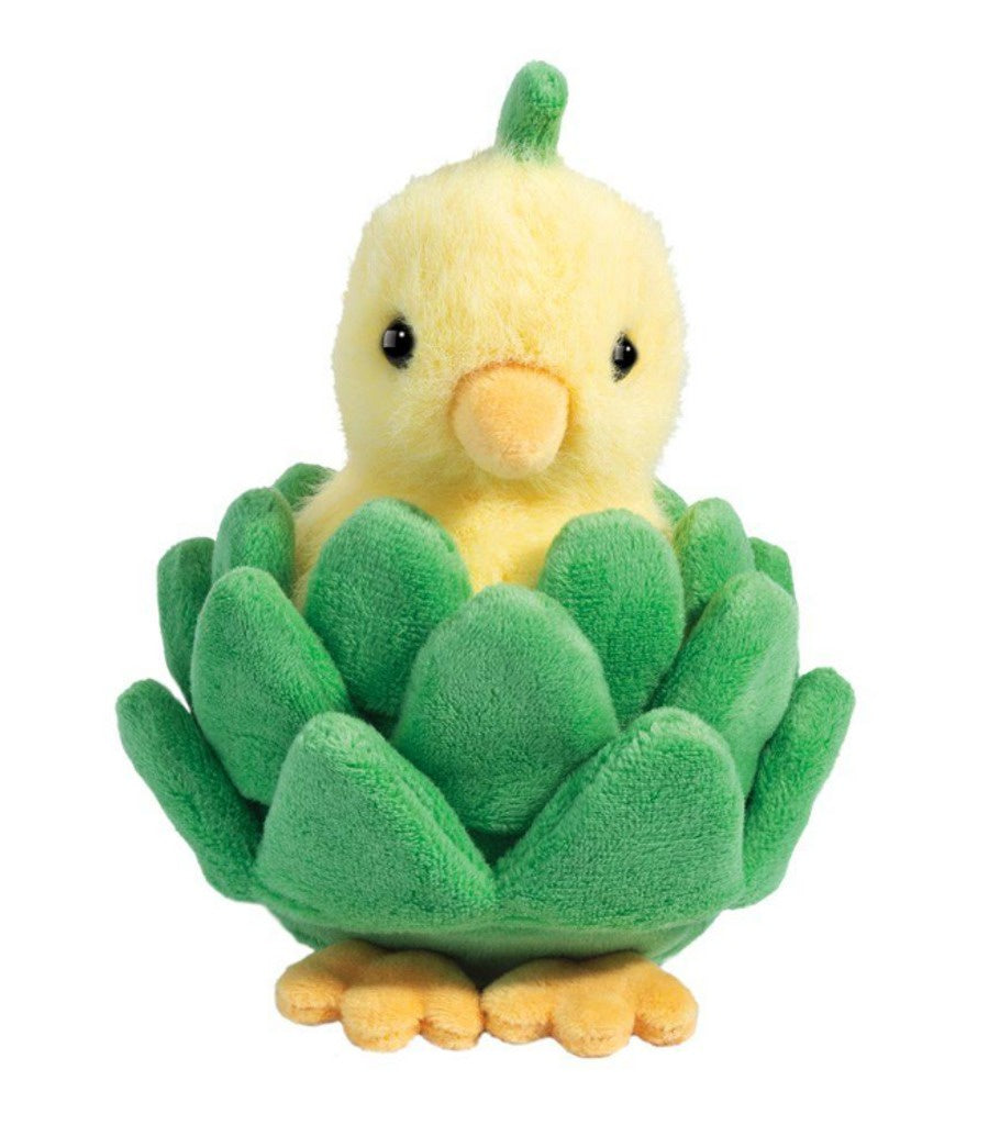 Say hi to Artichick! This adorably plush toy is a playful twist on a classic spring animal. Instead of an egg, this chick has popped out of an artichoke!
