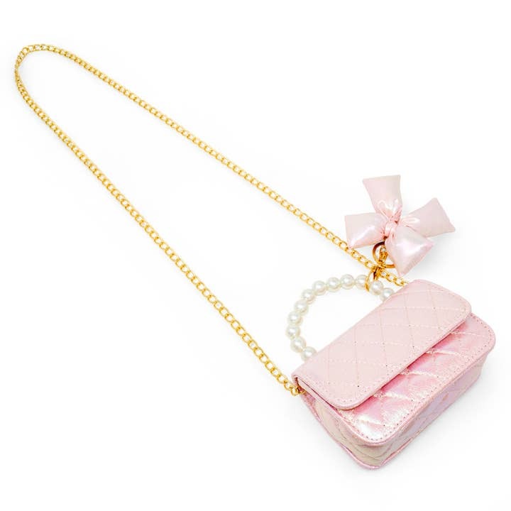 Tiny Treats Shiny Quilted Fluffy Bow Handbag - Pink
