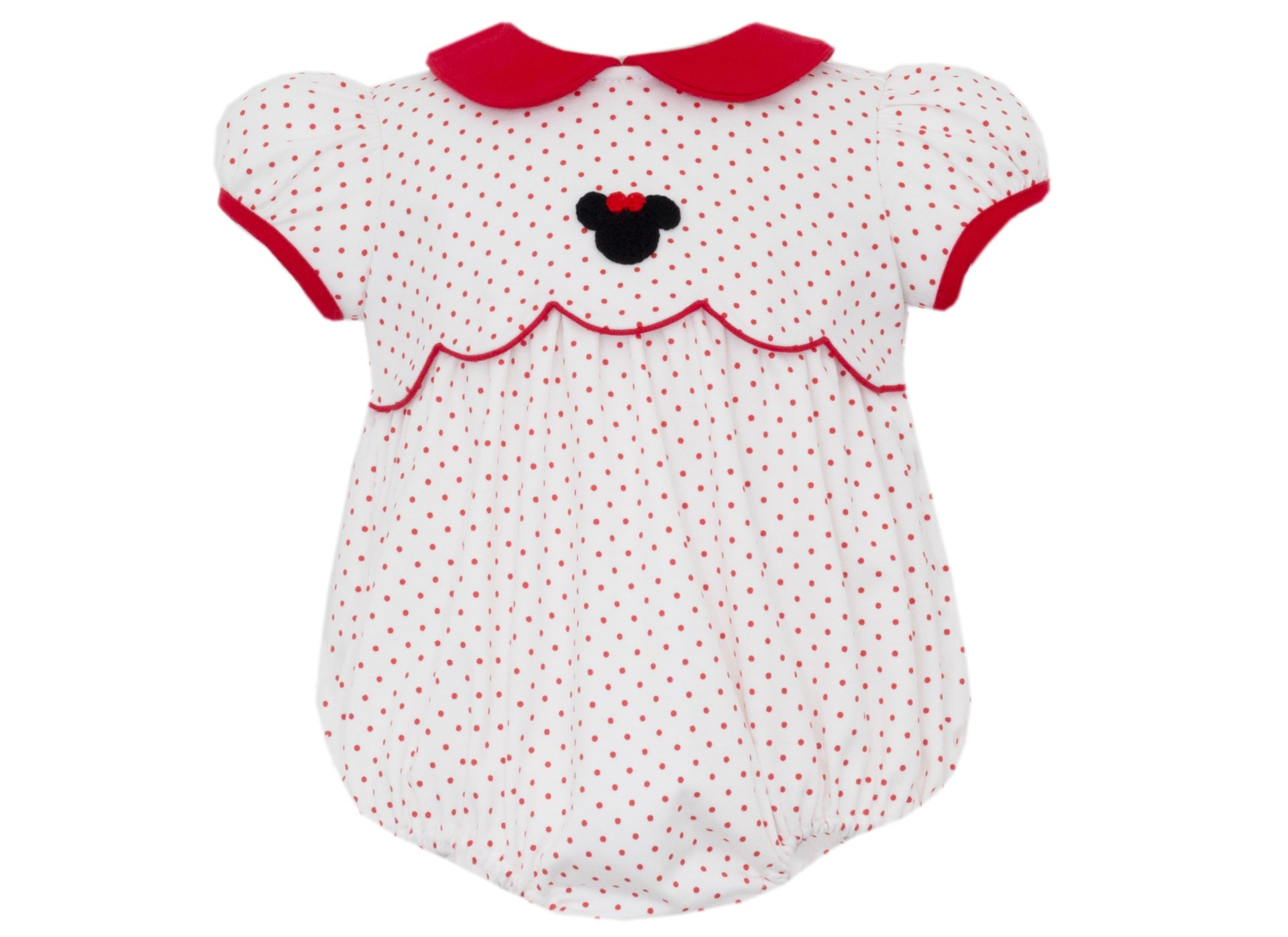 Petit Bebe Minnie Mouse Red & White Polka Dot Knit Girl's Short bubble w/Red Collar 471F2-MF25 5208