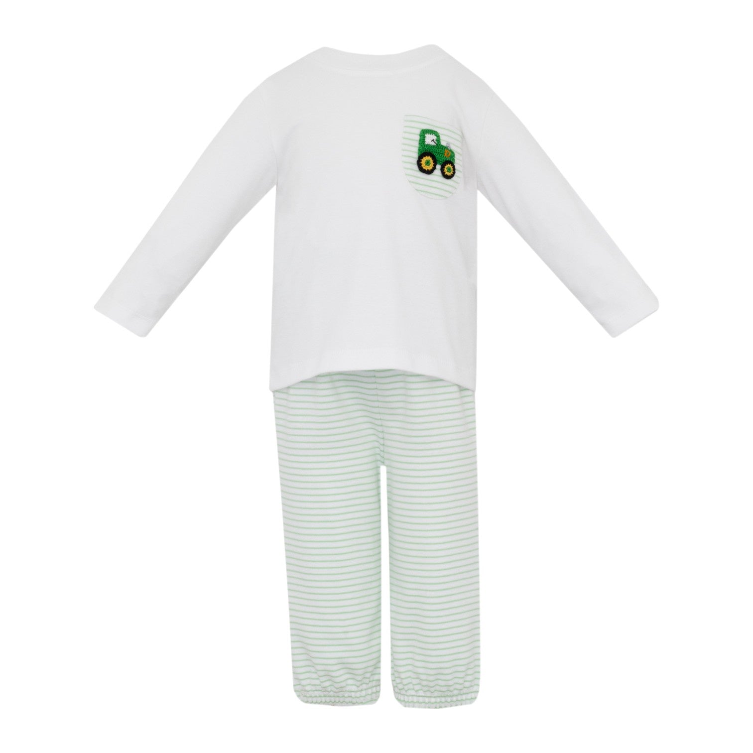 Petit Bebe Tractor Green stripe Knit Boy's Pant set W/Whit Knit T-shirt L/s 473M2-MF25 5209