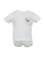 Petit Bebe Dinos Green Knit Stripe Boy's White T-Shirt & Diaper Set 457M-MS26 5301