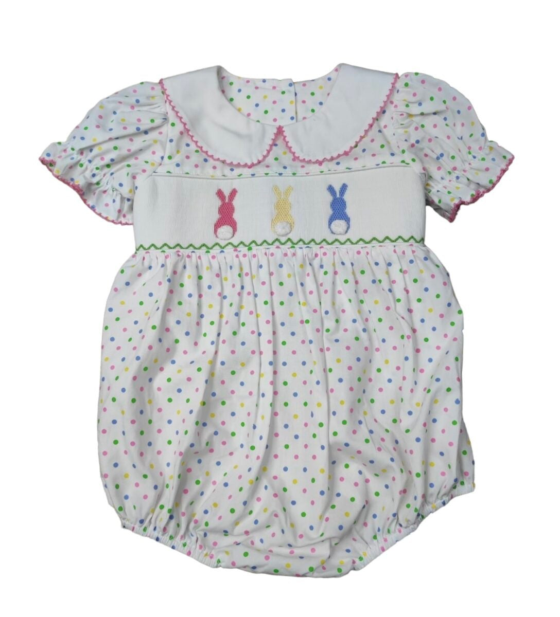 Three Sisters Bunny Hop Smocked Bubble W/Tie 707 5201