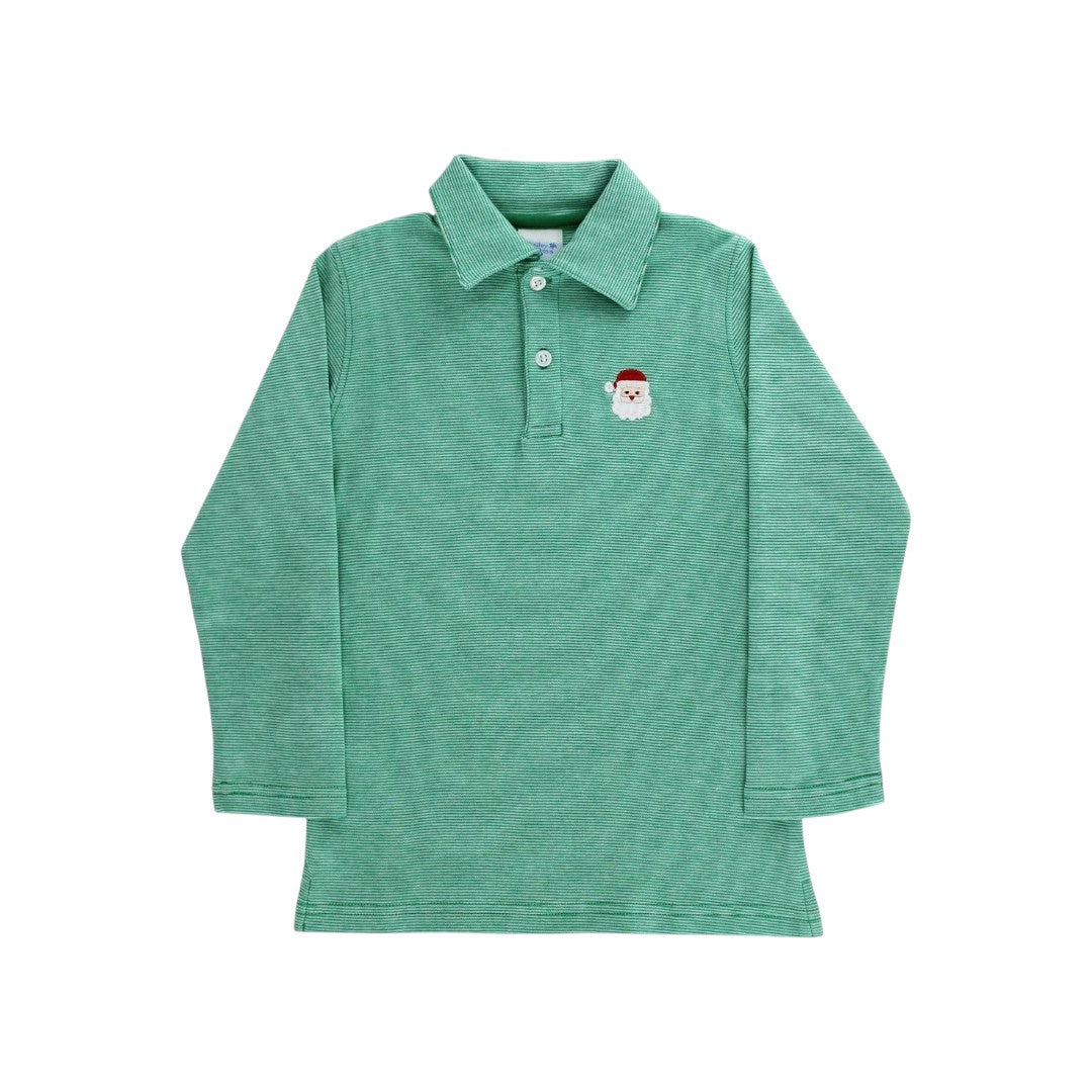 Bailey Boys Emb Knit Microstripe Polo Santa on Kelly 5208