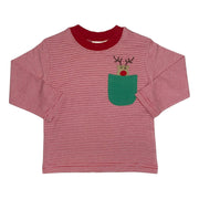 L/S Thin Stripe Red/White Shirt Green Pocket W/Reindeer Applioque