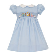 Petit Bebe Nativity Girl's Blue Pique Dress S/S 142D-MH25 5211