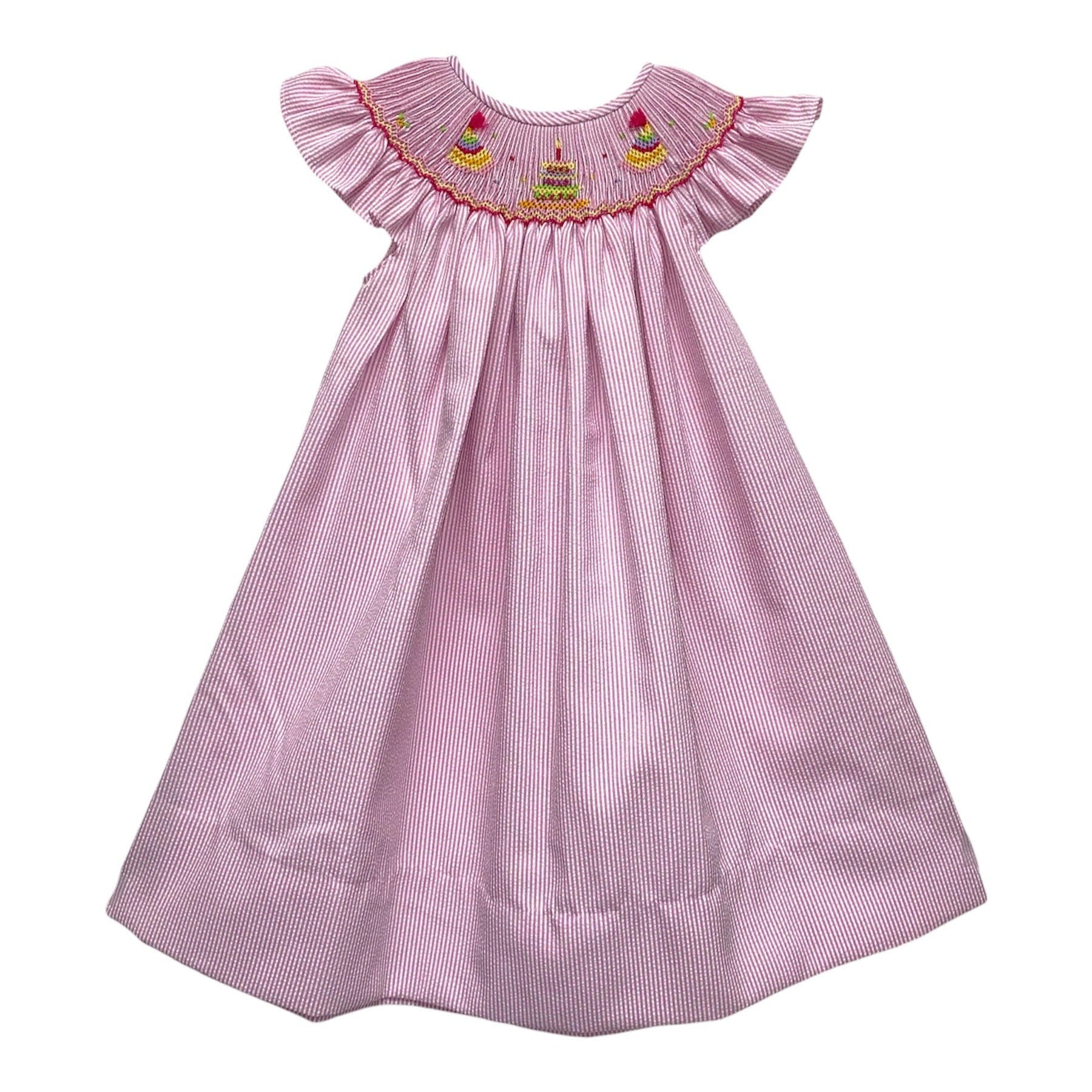 Angel Wing Bishop Smocked Birthday Pink/White Seersucker