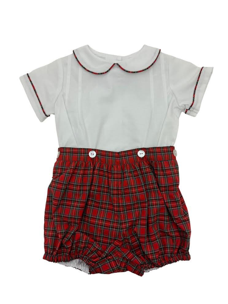 Anvy Kids Mac Button On Bubble S/S Red Plaid 7227 5107