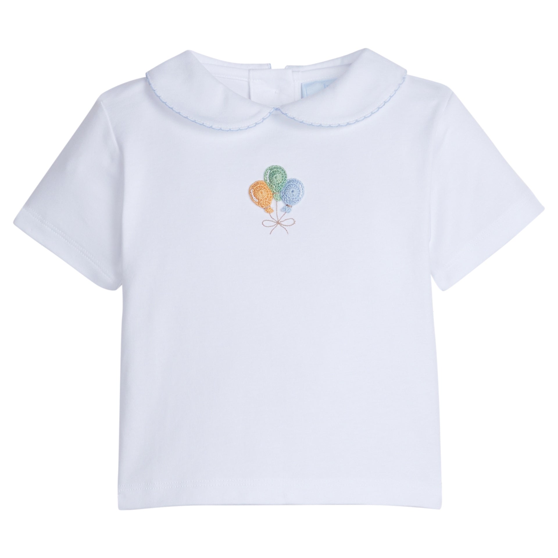 Little English Crochet Peter Pan Shirt Blue Balloons 5202