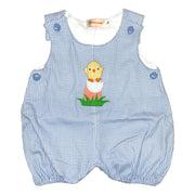 Lt Blue Gingham Bubble Romper Chick, Egg & Grass Appl