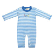Lt Blue Sky/White L/S Romper W/Fish on Line