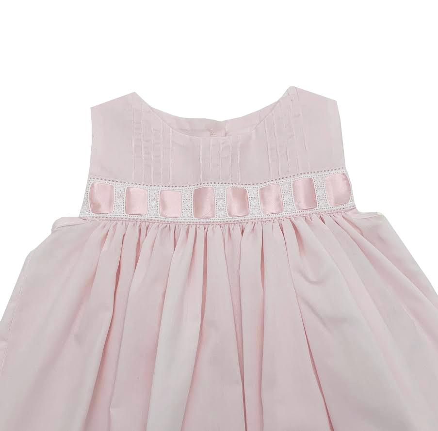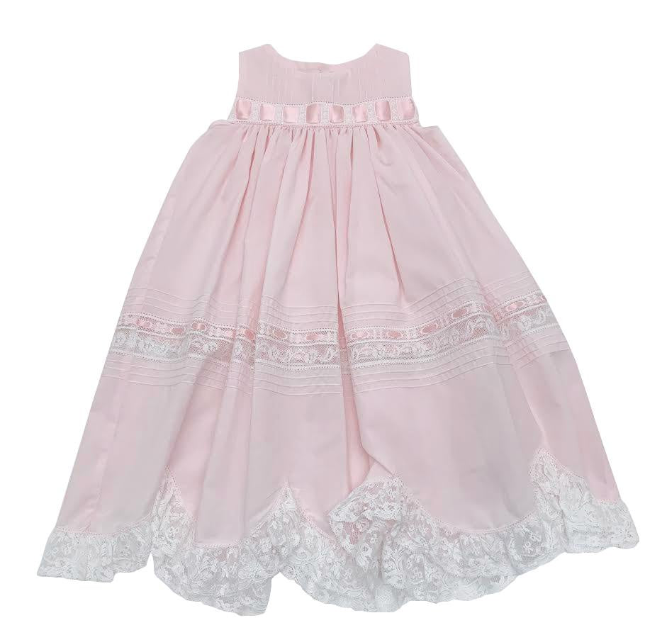 Treasured Memories Pink Sleeveless Dress w/ Pink Ribbon Insertion & White Lace 1908 4901PK/WH