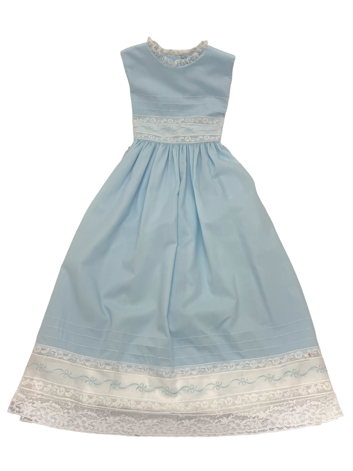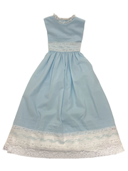 Treasured Memories Blue Sleeveless Dress W/White Lace & Ribbon S2839