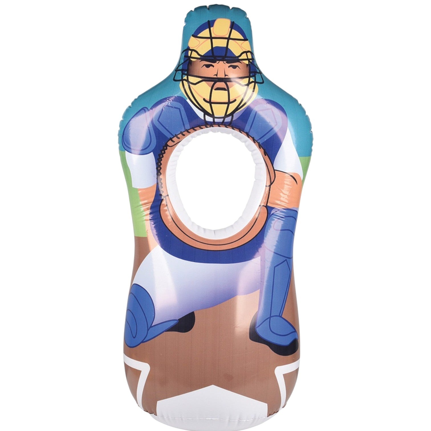 Pump up active play this summer as young athletes practice their hand-eye coordination! Elementary schoolers take aim for the hole in the middle of this double-sided inflatable target to build sports skills. They'll enjoy full bodied fitness throwing a football through the hole in the wide receiver, or pitching a baseball through the hole in the catcher. This clever sport toss sits at 44" tall once inflated, and has a weighted base to keep it in place. Balls not included.